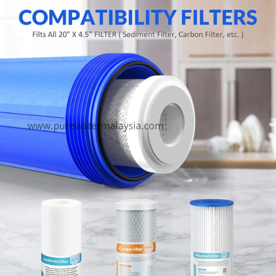 20″Jumbo Big Blue Whole House Housing Water Filter Fit with all standard 20″x4.5″ Filter Cartridges ,such as 20″x4.5″ PP Filter , 20″x4.5″ Jumbo String Wound Filter , 20″x4.5″ Jumbo Carbon Block Filter