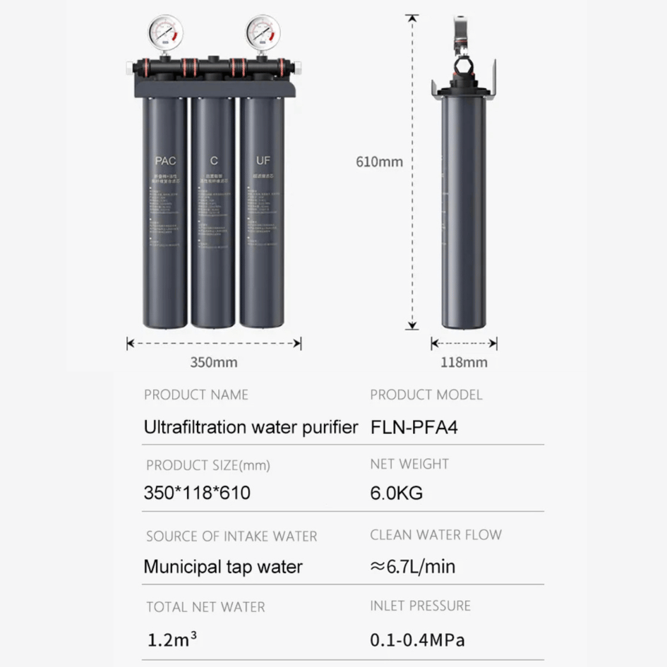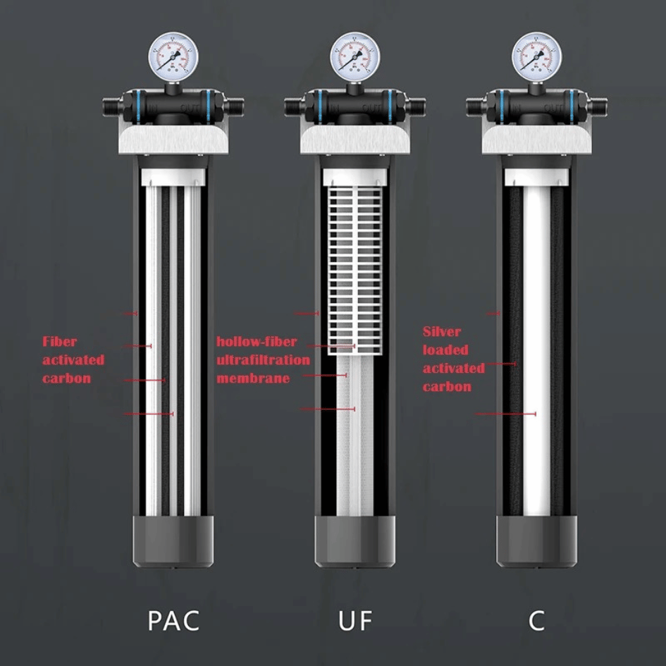 Multilayered Fine Filtration: Utilizes various filter cartridges, including folded membranes, activated carbon fiber, melt-blown layers, hollow-fiber ultrafiltration membranes, silver-loaded activated carbon, etc., achieving multi-level and multi-stage filtration to effectively remove impurities.