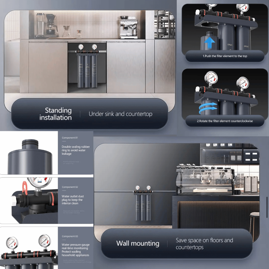 Commercial Water Purifier System 3 Stage Filtration Suitable Coffice Machine, Milk Tea or Coffee Shop