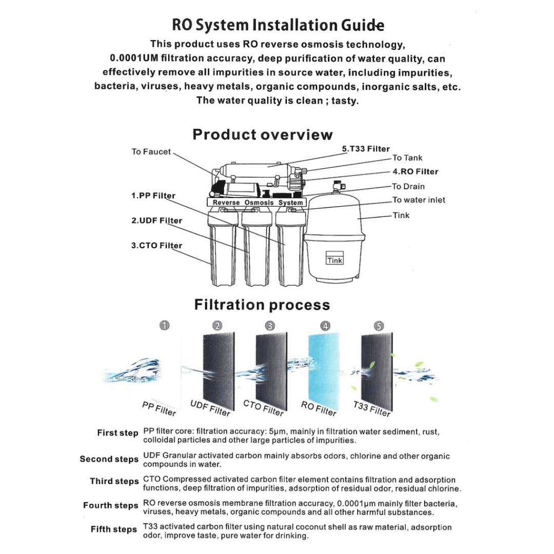 Reverse Osmosis Filter System Undersink 5 Stages Water Filter Cartridge