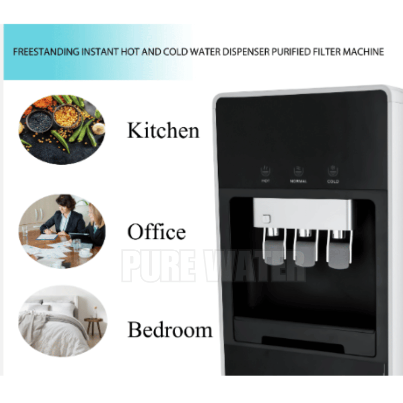 The Korea hot cold warm water dispenser is a versatile and highly efficient floorstanding appliance designed to meet your hydration needs. Whether you require hot, cold, or warm water, this dispenser delivers with precision and reliability. It is engineered to provide optimal convenience and functionality, making it an ideal choice for both residential and commercial settings.